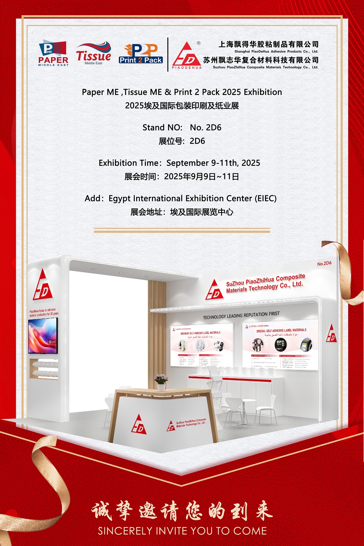 Suzhou Piaozhihua är glada över att delta i tidningen Me, Tissue Me & Print 2 Pack 2025 Exhibition, en viktig regional plattform för förpacknings-, tryck- och pappersindustrin, som hålls från 9 till 11 september 2025, på Egypt International Exhibition Center (EIEC) i Kairo. Som en ledande leverantör av självhäftande etikettmaterial kommer Piaozhihua att presentera sitt omfattande utbud av vanliga och speciella limprodukter vid monter nr 2D6, som markerar lösningar utformade för både standard och krävande applikationer.